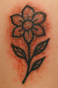 Beim Tätowieren dringen Nadeln bis zu 3.000 Mal pro Minute in die Epidermis und Dermis ein. Dadurch entsteht: