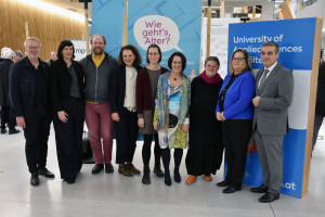 Am 22. Jänner 2026 wurde die Ausstellung "Wie geht's, Alter?" am Campus St. Pölten mit anregenden und ermutigenden Worten eröffnet. Zahlreiche Gäste folgten der Einladung und wurden von Abgeordneten zum NÖ Landtag und Obmann des Sozialausschusses Anton Erber in Vertretung von Landeshauptfrau Johanna Mikl-Leitner, Stadträtin Gabriele Vavra in Vertretung für Bürgermeister Matthias Stadler, Christine Haselbacher (Leiterin der Fakultät für Gesundheit und Soziales), Ernst Pfaffeneder (Architekt, Lehrender und ORTE-Vorsitzender) sowie den Kurator*innen Franz Koppelstätter, Eva Schmolmüller und Uschi Reiter begrüßt. Moderiert wurde die Eröffnung von Heidrun Schlögl (Geschäftsführerin, ORTE Architekturnetzwerk NÖ).