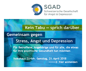 Liebe Medienschaffende,Depressionen und Angststörungen sind trotz ihrer weiteren Verbreitung ein Tabu, worüber viele nicht den Mut haben zu sprechen. Dies will die SGAD (Schweizerische Gesellschaft für Angst und Depression, http://www.sgad.ch ) ändern und ruft den ersten Schweizer Publikumskongress zum Thema Stress, Angst und Depression ins Leben.