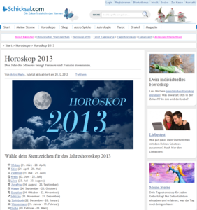 Astrologie-Webseite schicksal.com präsentiert das Jahreshoroskop 2013