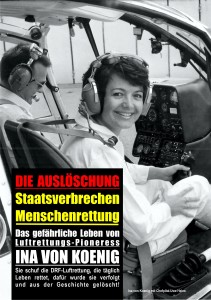 Die vergessene Pionierin, die die ersten permanenten Rettungshubschrauber in Deutschland starten ließ, meldet sich aus ihrem Exil in der Schweiz. Es war der 6. September 1972, als Ina von Koenig die Deutsche Rettungsflugwacht (DRF) ins Leben rief, vom Tag 1 der Gründung als absolutes NOVUM ein Ambulanzflugzeug in Deutschland angeboten hatte und damit die Grundlage schuf für das, was heute als modernes System der deutschen Luftrettung gilt. Keine Institution wollte die Risiken übernehmen, kein Ministerium und auch nicht das Deutsche Rote Kreuz wollten ihr Konzept verwirklichen. Sie war die Erste. Und genau das ist der Grund, warum sie heute offiziell nicht existieren darf. Kein Mann hatte vor ihr die Idee. Aber viele Männer wollten sie stoppen – sogar ermorden. https://www.luftrettung-pionierin.de