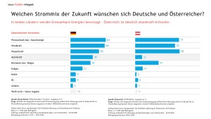 Im Vergleich mit Österreich wird schnell deutlich, dass unser Nachbarland schon immer auf Atomkraft verzichtet – und aus meteorologischer und geographischer Perspektive bei der Katastrophe von Tschernobyl stärker betroffen war. Das hat das SINUS-Schwesterinstitut INTEGRAL für Österreich herausgefunden. So ist die Ablehnung der Atomkraft dort deutlich stärker ausgeprägt als hierzulande: 76 % finden es richtig, dass Österreich auf Atomkraftwerke verzichtet (vs. 40 % in Deutschland), für die Stromerzeugung wünschen sich 12 % Atomkraft (vs. 39 %). Zudem sind die Anteile jener, die Atomkraft mit Blick auf Klimaschutz, Kostenersparnis oder Versorgungssicherheit befürworten, nur halb so hoch wie in Deutschland.