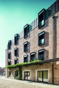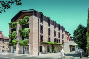 Ein leerstehendes Backsteingebäude in Formigine in Italien wurde behutsam und mutig zugleich saniert. Das nussbraune Dach aus PREFALZ-Aluminium steht in spannendem Kontrast zur alten Ziegelfassade und der klimaregulierenden Begrünung.