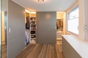 Durch fast lautlose Schiebeelemente lassen sich in Loft-ähnlichen Räumen die Bereiche Küche, Essen und Wohnen elegant trennen. Durchgänge, wie die zum Bade-, Toiletten und Schlafbereich, werden praktisch ohne Platzverlust separiert. Als Material finden vorwiegend Glas und Holz Verwendung. Eine Kombination, die sich ausgezeichnet bewährt hat. Mögliche Ausführungen sind bei Trennwänden das unten laufende oder das hängende System.