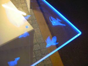 In der Gastronomie und Hotellerie kommt es immer mehr auf Design und Vermittlung eines luxuriösen und eleganten Ambientes an. Gleichzeitig soll mit jedem neuen Interieur auch Werbung für die Location gemacht werden. Die Gäste sollen über das Lokal und seine unverwechselbare Ausstattung auch reden. Und genau hier spielt Licht eine ganz entscheidende Rolle. Licht verwandelt und verzaubert. Licht ist extrem aufmerksamkeitssteigernd.Eine Entwicklung aus der Schweiz verbindet Exklusivität mit Attraktion. Für Aufmerksamkeit sorgen Tische, in deren Glasplatte gelaserte 3-D-Motive in farbigem LED-Licht aufleuchten. Auch in heller Umgebung! Form und Größe sind frei konfigurierbar. Alles ist möglich, auch bei den 3-D-Lasermotiven - Firmen-Logo, andere Motive oder auch das Logo eines Lieferanten. Infos unter: http://www.aristob.com/de/produktkategorien/indoor-beleuchtung/led-tisch-mit-3d-laserung-tabloo/