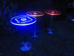 Die Designer von aristo B GROUP: "Das Besondere an den LED-Tischen ist ja ihre Leuchtkraft. Die Tische sind auch in einer hellen Messehalle ein echter Hingucker und die Traube von Interessenten vor unserem Stand war gewaltig. Vor allem aus Hotel- und Gastrobetrieben." Wie sich so ein Tisch sehr schnell refinanzieren kann, erzählte ein gewiefter Gastronom, der die Tische mit dem 3-D-Logo seiner Lieferanten lasern lassen wollte. aristo B: "Natürlich lässt sich der Kunde für diese unmittelbare Werbefläche bezahlen und wir waren erstaunt, als er für die komplette Refinanzierung nur rund ein Jahr in seiner Disco kalkulierte. Clever." Werbung, Luxus und Refinanzierung müssen sich nicht ausschließen!