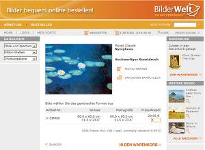 Ganz nach persönlicher Vorliebe kann man zwischen Impressionisten wie Monet und Renoir oder Expressionisten wie Marc und Macke stöbern. In den "Motivwelten" finden sich attraktive Bilder-Sets zu "Küche", "Blumen" oder "Landschaften" sowie zahlreiche andere Themenfelder. Unentschlossene können sich auf den Seiten "Bestseller", "Klassiker" oder "Geschenkideen" Anregungen für ihre Wanddekoration holen.