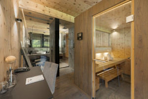 Besonders exklusiv: In fünf luxuriösen Suiten der Sportresidenz befindet sich jeweils eine eigene Zirbensauna von KLAFS – ideal für private Auszeiten in der Suite, umgeben von natürlichem Zirbenholzduft.