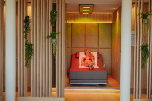 Für noch intensivere Erholung setzt das Larimar im Ladies Spa außerdem auf die Kombination aus der Pendelliege SWAY und der SONNENWIESE® K. Die Pendelliege ermöglicht durch eine speziell entwickelte elektromechanische Kinematik eine sanfte, rhythmische Bewegung, die den Körper innerhalb weniger Minuten in einen Zustand tiefer Entspannung versetzt. Ergänzt wird dieses Erlebnis durch das Deckenelement SONNENWIESE® K, das mit kollagenbildenden Wärmestrahlen die Hautregeneration unterstützt, die Hautstraffung fördert und einen natürlichen Erneuerungsprozess anregt. Zusammen entsteht ein Entspannungs- und Beautysetting, das Körper und Geist gleichermaßen verwöhnt.
