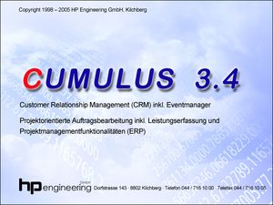 CUMULUS - Projektmanagement-Software mit integriertem CRM und ERPEine funktionsfähige, gut organisierte Auftragsbearbeitung ist der Schlüssel für eine erfolgreiche Unternehmenstätigkeit. CUMULUS hilft Ihnen, Ihre Aufträge schnell und rationell zu bearbeiten. Angefangen bei der zentralen Adressverwaltung über die Rechnungsstellung, die Stundenerfassung bis hin zur Nachkalkulation der Projekte unterstützt Sie CUMULUS umfassend und professionell.