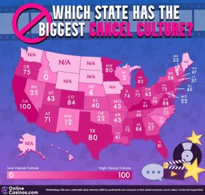 "Cancel Culture" in den USA: User aus Kalifornien am konsequentesten (Grafik: onlinecasinos.com) |