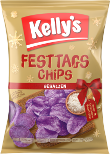 Zu den zahlreichen Feierlichkeiten und Familienfesten am Jahresende gesellt sich heuer ein extraknuspriger Snack: Kelly's Festtags Chips in einer außergewöhnlichen violetten Farbe und mit einem besonders intensiven Geschmackserlebnis. Zudem präsentiert sich die Sonderedition in einem attraktiven Design in Rot und Gold – ideal für die geschmückte Festtafel!