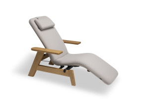 Seit Jahrzehnten treibt KLAFS die Leidenschaft an, Wellness neu zu denken und Produkte zu schaffen, die Körper, Geist und Sinne berühren. Ein echter Ruhepol ist mit der Wellnessliege SOMRA in Zusammenarbeit mit dem renommierten Designer Sebastian Herkner entstanden. Ihre weichen, fließenden Formen, die warmen Holzvarianten und die präzise eingearbeitete Polsterung sind inspiriert von der Ruhe des Zen und laden dazu ein, loszulassen. Die vollflächige Wärmefunktion sorgt für eine sanfte, gleichmäßige Erwärmung des Körpers vom Nacken bis zu den Füßen. Diese tiefenwirksame, wohltuende Wärme verlängert die regenerierende, gesundheitsfördernde Kraft des Saunabads. Handgefertigt in Deutschland, ist SOMRA Ausdruck von Achtsamkeit gegenüber Material, Detail und Mensch.