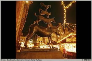 Die legendären Bremer Stadtmusikanten erwarten Sie zur schönsten Zeit des Jahres in Bremen. Den Besucher Weihnachtsmarktes lockt eine Vielzahl von vorweihnachtlich geschmückten Ständen. Über einen beleuchteten Rundweg geht es vom Weihnachtsmarkt an Bremens Lebensader, die Weser. Die beliebte Promenade am Fluss lädt zur Adventszeit zum "Schlachte-Zauber" ein. Erleben Sie den winterlichen maritimen Markt, der vom 27. November bis 23. Dezember seine Tore geöffnet hat. Mehr Informationen unter: http://www.bremen-tourismus.de