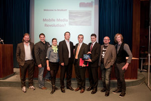 Helmut Hoffer von Ankershoffen (CEO neofonie GmbH), Philipp Nagele (Co-Founder MobileMonday Austria), Mesi Tötschinger (Chefredakteurin news.at und Xpress), Andreas Hladky (CEO point of origin), Peter Krotky (Geschäftsführer und Chefredakteur DiePresse.com), Alexis Johann (Moderator des Abends und Geschäftsführer Wirtschaftsblatt Digital), Dr. Martin Zimper (CAST Zürcher Hochschule d. Künste), DI (FH) Vinzenz Emmanuel Weber (Mobile Software Engineer - blockhaus medienagentur) (Ende)