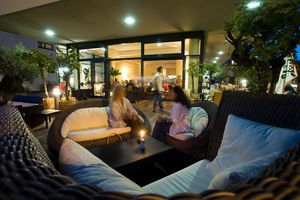 Klare Formen sind vorrangig. In Architektur, Einrichtung und Design spiegelt sich dies wieder: edles Nussbaumholz in Verbindung mit Leder und Glas. Im Lokal selbst finden 100 Gäste Platz, auf der Terrasse, die auf zwei Seiten das Bacaro umgibt, können weitere 80 Personen unter Olivenbäumen Platz nehmen.