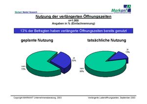 Im Rahmen der Markant Omnibusbefragung wird die tatsächliche Nutzung der verlängerten Ladenöffnungszeiten im Rahmen eins Monitorings erhoben. Für nähere Informationen steht das Team von Markant jederzeit gerne zur Verfügung