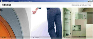 Die intuitive Navigation und die gezielt eingesetzten Animationen kommunizieren das Image von siemens_arts&service an die Kunden und laden zu einem Besuch in der Galerie ein.