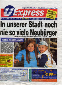 Wien (pte028/31.03.2004/13:09) Die Wiener Gratiszeitung U-Express ist eingestellt worden. Heute, Mittwoch, erschien die letzte Ausgabe der von der Kronen-Zeitung http://www.krone.at vor drei Jahren gegründeten Zeitung. Darin werden für die Einstellung des Gratisblattes Kostengründe angegeben. Tatsächlich wären die Verträge zur Weiterführung des U-Express morgen, Donnerstag, ausgelaufen. Bei einer Gesellschafterversammlung sollen sich vor allem die Mediaprint-Gesellschafter WAZ (Westdeutsche Allgemeine Zeitung) sowie Raiffeisen gegen eine Verlängerung ausgesprochen haben, heißt es aus dem Umfeld der Zeitung.