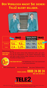 Weitere Informationen zu Tele2 gibt es im Internet unter http://www.tele2.at . Zur Anmeldung ist Tele2 unter der Nummer 0800 24 00 24 aus ganz Österreich kostenlos erreichbar.