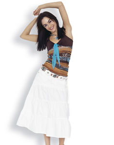 Natürlichkeit und Ethno-Einflüsse machen diesen Look aus. Pastellige, rauchige Farben wie Rosenholz, Bleu, Türkise, Creme, Vanille, Apricot und Jade in Kombination mit Braun- und Beigetönen lassen bei Blusen und Tops das Feuerwerk an verspielten Details und Materialmix so richtig zur Geltung kommen. Besondere Eyecatcher sind Spitzeneinsätze und Makramé, Häkellook und Perlenstickerei. Gebatikte Shirts und Tops finden sich ebenso wieder wie florale Prints und Karos. Effektvoll gewickelt, in Lagen übereinander getragen und kombiniert mit Volantröcken oder 3/4-Hosen lässt sich die Sommerhitze ertragen.