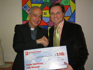Die Caritas startete im Dezember ein gemeinsames Projekt mit dem Seminaranbieter http://www.iir.at/u/a3568">Institute for International Research (IIR) Österreich: "Jeder Seminarteilnehmer trägt mit seiner Seminargebühr wesentlich dazu bei, dass die Kinder mit mehrfacher Behinderung 'Am Himmel' die bestmögliche Betreuung bekommen können. Wer sich für ein IIR Seminar entscheidet, entscheidet sich auch dafür, diesen Kindern zu helfen", sagt Manfred Hämmerle, Country Manager von IIR Österreich. Für jede der 128 Anmeldungen, die im Zeitraum vom 12. bis 31. Dezember 2005 für ein IIR Seminar eingelangt ist, gehen nun Euro 70,- an die Caritas Einrichtung "Am Himmel". Insgesamt kam dadurch die stolze Summe von Euro 8.960,- zusammen.