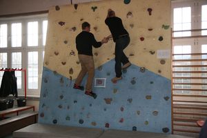 Und in der Tat, dem launischem Frühjahrswetter ein Schnäppchen geschlagen, ließen es sich die über 60 Gäste nicht nehmen, den Anzug oder Streetwear gegen Sportgewand und Kletterschuhe zu tauschen und "in die Wand zu hängen". Die Kletter-Kandiaten, teils noch nie in der Wand gewesen, in mehrere Teams mit Kindern und Erwachsene aufgeteilt, maßen sich beim Indoor-Klettern in Kraft, Ausdauer, Schnelligkeit, Teamgeist und Geschicklichkeit. Mit viel Begeisterung, Geschick, Spaß und einer ordentlichen Portion Mut erkletterten Groß und Klein schwindelerregende Höhen, Kraft zehrende Steilkanten und Überhänge. Zwischendurch war aber genug Zeit um neue Kräfte an der Vitamin-Bar mit frisch gepressten Säften zu tanken und sich bei einem liebvollen Buffet mit gesunden Köstlichkeiten verwöhnen zu lassen.