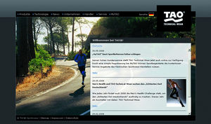 Groß geworden ist der Sportswear-Hersteller TAO Technical-Wear mit Running-Textilien, die sich durch ein Höchstmaß an Qualität und Tragekomfort auszeichnen. TAO-Running zielt auf Läufer ab, die bei allen Witterungen ihrem Hobby nachgehen. Weiter hat sich das Unternehmen auch auf Bekleidung für Multisportler spezialisiert - TAO-Multisports richtet sich mit variabel einsetzbaren, funktionellen Produkten an Sportbegeisterte aus den Bereichen Walking, Skating, Cross-Country, Indoor und Nature.