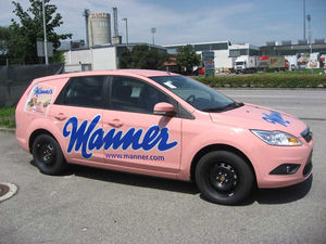 Perchtoldsdorf (pts025/26.11.2009/12:47) 50 Länder dieser Erde sehen, wenn sie Manner hören, rosa. Die Original Neapolitaner Schnitten in ihrer auffallend rosa Verpackung haben sich weltweit als süßer Botschafter Österreichs etabliert. Zum Fiaker und der Wiener Straßenbahn, die als Werbeträger im typischen Manner-Rosa seit langem im Einsatz sind, gesellen sich nun die Firmenfahrzeuge der tschechischen Manner-Niederlassung. Dank der 3M Scotchcal Farbfolien Serie 85 Car Wrap war die neue rosa Verpackung problemlos möglich.