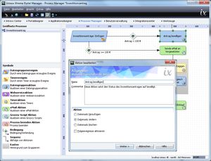 Auch mehrstufige Prozesse, die sich über verschiedene Portalapplikationen erstrecken, können mit dem 'Prozess Manager' von Intrexx sehr einfach modelliert werden. Unter anderem ist es möglich, die Daten aus einer Portalapplikation bei der Speicherung direkt in andere Intrexx-Applikationen zu übertragen. Dadurch kann z.B. die Reservierung von Besprechungs- und Vortragsräumen mit der Bestellung des entsprechenden technischen Equipments und der Beauftragung des Caterings verknüpft werden. So entsteht aus den verschiedenen Teilprozessen mit Hilfe des 'Prozess Managers' ein komplettes Veranstaltungs-Management.