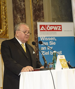 Dr. Johannes Kleemann, Präsident des ÖPWZ, blickte in seiner Begrüßung auf die Gründungszeit und die bewegten Nachkriegsjahre zurück und stellte fest, dass das ÖPWZ als Bildungsinstitution der Sozialpartner einmalig in Europa ist.