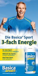 Alle leistungsrelevanten Nährstoffe erhält man als Sportler mit Basica Sport in einem einzigen Getränk und hat so Ausdauer und Energie über die gesamte Leistungsphase. Nach dem Sport wird die Regeneration mit basischen Mineralstoffen beschleunigt, die einer Übersäuerung entgegenwirken. Das schnell lösliche Getränkepulver mit frischem Zitrusgeschmack dient der besonderen Ernährung des Sportlers. Mit Mineralstoffen (z. B. Natrium, Kalium- und Magnesiumcitrat), Spurenelementen, Vitaminen und Kohlenhydraten ist man optimal versorgt.