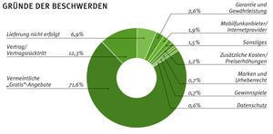 Top 3 Beschwerdegründe: Vermeintliche "Gratis"-Angebote, Streitigkeiten rund um Verträge bzw. Vertragsrücktritte und Lieferprobleme