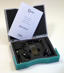 Genau hier setzt der TinniTool NeuroSonic an. Durch die Stimulation der Nervenzellen, mit akustischen Impulsen, zielt die Therapie primär darauf ab, den Tinnitus-Ton wieder verlernen zu lassen. Das Gerät gleicht einem MP3-Player, jedoch mit komplett anderer Software. Im TinniTool NeuroSonic ist eine vollständige Therapie-Datenbank gespeichert. Eine Klangtherapie-Datenbank, eine Maskierungs-Datenbank und ein Tinnitus-Hörtest. Im Weiteren steht noch freier Speicherplatz für weitere Behandlungsformen bereit.