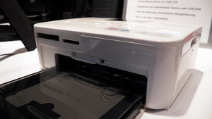 Anschließend stellte Julia Pichler, zuständig für die Pixma-Reihe, neue Druckermodelle vor. Hier liefert Canon etwa mit dem MG4150 einen WLAN-fähigen Inkjet-Drucker. Dieser bietet beidseitigen Druck, größerformatige "XL-Tintenpatronen" mit einer nominellen Kapazität von 600 ISO-Seiten in Schwarz/Weiß. Die maximale Auflösung liegt bei 4.800 DPI, das Gerät kann auch über die "Easy-PhotoPrint"-App angesteuert werden, die für iOS bereits vorliegt und für Android in Kürze erscheinen soll. Cloud-Zugriff auf Fotohoster wie Google Picasa oder den Canon-eigenen "iMAGE Gateway" komplettieren die wesentlichen Features. Das Gerät soll im März im Handel erhältlich sein, der empfohlene Verkaufspreis beträgt 89 Euro.