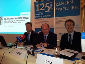 Der Auftragssaldo heimischer KMU hat sich verglichen mit 2011 nahezu halbiert und sank damit zum zweiten Mal in Folge um fast 50 Prozent. Noch am besten schlug sich der Dienstleistungsbereich mit plus 8,4 Punkten, verschlechterte sich im Vorjahresvergleich aber ebenfalls. Einzig im Baugewerbe stiegen die Aufträge (plus 1,7 Punkte). Deutlich schlechter noch ist es um die Auftragserwartungen der KMU bestellt, die sich nur im Handel und bei Dienstleistungen positiv erwartet werden.