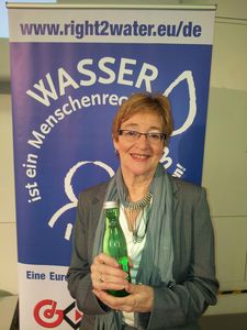 Schuld sei das mangelnde Bewusstsein der Staaten, was eines Tages sogar zu Wasserkartellen führen könnte. "Nur Wasser sparen ist zu wenig, wir brauchen auch dieses seit 2010 geltende Menschenrecht schützende Gesetze", fordert Barlow und nennt die Wasserprivatisierung von Großbritannien in der Hand von 21 Unternehmen als negatives Beispiel. Die EU-Richtlinie gebe Anlass zu Sorge. Barlow: "Wasser ist ein öffentliches Gut und nicht unbegrenzt vorhanden. Um menschliche Tragödien zu verhindern, darf es niemand besitzen."