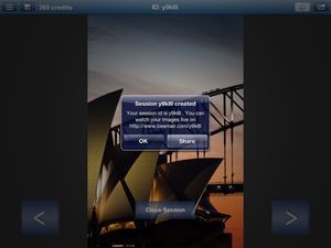 Eine Übertragung wird durch Start der App und das Auswählen von Bildern aus der Fotogalerie, oder das Öffnen eines PDF mit BeamAir begonnen, eine Verbindung zum Internet muss dafür vorhanden sein. Für jede Session wird ein eigener Link mit einem individuellen, fünfstelligen Code generiert. Dieser Link kann mit den Zusehern direkt aus der App zum Beispiel via Facebook, Twitter, e-Mail oder SMS geteilt oder einfach mündlich weitergeben werden.