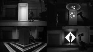 Das Video zeigt zwei Roboter, die flache Displays bewegen, die auch als Projektionsflächen für hochaufgelöste Computergrafiken dienen. Der Schauspieler interagiert mit den Flächen, die gleichzeitig eine Serie von grafischen und physikalischen Bewegungen und Veränderungen durchlaufen. Zum Teil erscheinen sie wie Fingerfertigkeit, zum Teil wie eine Tour de Force.