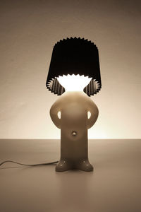 Der schüchterne Mr. P: Wenn er "aufgeregt" ist, leuchtet sein Kopf. Der Lampenschirm ist einfach aufgesetzt und in unterschiedlichen Farben erhältlich. Der Ein-/Aus-Schalter dieser Lampe ist im wahrsten Sinn des Wortes das Beste Stück von Mr. P. Die cirka 40 cm hohe Lampe ist der Blickfang in jedem Wohnzimmer oder sogar auf dem Nachtkästchen. Als Zubehör sind sogar Krawatten oder verschiedenfarbige Schalter erhältlich.