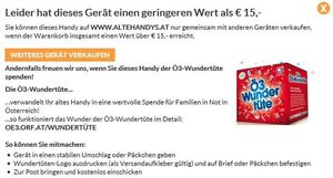 Auf https://altehandys.at können Konsumenten und Unternehmen ihre Handys, Smartphones und Tablets mit ein paar Klicks verkaufen. Das System ist einfach und sicher. Die Verkäufer kommen rasch zu ihrem Geld. Seit Jänner wurden an die 1.000 Geräte zurückgekauft. Die am häufigsten angekaufte Marken sind Blackberry, Nokia und Samsung. Neu ist die Kooperation mit der Ö3-Wundertüte: Geräte, die unter 15,- wert sind und von https://altehandys.at nicht mehr angekauft werden, können kostenlos an die Ö3-Aktion geschickt werden. Die Erlöse kommen der österreichischen Caritas zugute.
