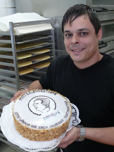 Der Geschäftsführer der Konditorei Schweiger, überreichte heute Freitag, seine süße Tortenkreation, an die Salzburger Volkspartei. ÖVP-Landesgeschäftsführer ÖVP-Landesgeschäftsführer LAbg. Mag. Wolfgang Mayer und die Mitarbeiter des Hans-Katschthaler-Hauses bedanken sich herzlich und ließen sich die Vizekanzler-Torte schmecken. "Wir freuen uns sehr über die süße Versuchung und bedanken uns herzlich bei Daniel Nöhammer. Seine Botschaft, dass die Salzburger Klein- und Mittelbetriebe auf eine gute Zusammenarbeit mit dem neuen Wirtschaftsminister und auf die Umsetzung notwendiger Reformen hoffen, werden wir voll unterstützen", so Mayer abschließend. "Meine Nachricht ist also angekommen", so Daniel Nöhammer zufrieden.