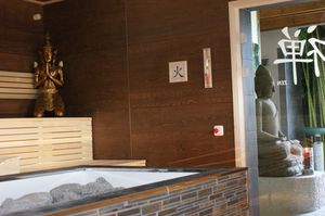 Finnische Sauna mit Buddha-Eisbrunnen und Kaltwasserbecken