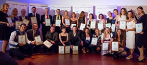 Bildtext: European HEALTH & SPA AWARD Winner 2014: v.l.n.r: (hinten) Angelika Dengg (Hotel Post Lermoos), Barbara Umnig (Lanserhof), Petra Dittmann (Beautyvital), Ursula Piatnik (Therme Wien), Gertraud Krobath (Heiltherme Bad Waltersdorf), Karin Leeb (Hotel Hochschober), Nicola Nagel (Liquidrom), (vorne) Julian Ziegenhagen (Therme Wien), Oliver Oswald (Asia Spa Leoben), Michael Bayer (Alpenresort Schwarz), Andreas Poschalko (Klafs)