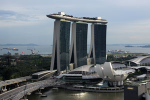 Zu einem absoluten Publikumsmagneten wurden auch die drei 55-stöckigen Türme des 2.561-Zimmer-Hotels Marina Bay Sands http://www.marinabaysands.com . Sie tragen auf 191 Meter Höhe einen 340 Meter langen Garten mit einem 146 Meter langen Infinity-Pool. Inklusive der Grundstückskosten hat dieses neueste Wahrzeichen, das der Las Vegas Sands Corp. gehört, rund acht Mrd. Euro verschlungen.
