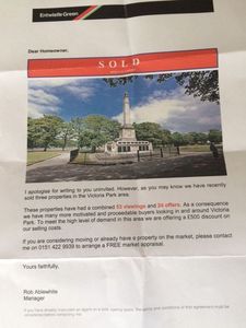 Widnes (pte004/08.06.2016/06:10) Die britische Maklerfirma Entwistle Green http://entwistlegreen.co.uk hat versehentlich einen Infobrief zu bereits verkauften Immobilien mit dem Foto eines lokalen Kriegdenkmals sowie den Vermerk "SOLD" verschickt - und damit den massiven Unmut der Anwohner des Victoria Parks der englischen Stadt Widnes auf sich gezogen.