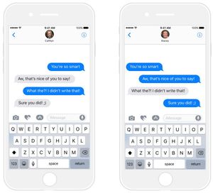 Die Sticker kommen beispielsweise in den Ausführungen "Du bist so klug", "Du bist mein Held", "Wie konnte ich nur je so falsch liegen?", "Meine politischen Ansichten sind total falsch" oder "Ich habe einen schrecklichen Musikgeschmack". Für das Gegenüber sieht es dank der blauen Hinterlegung des Textes dann so aus, als hätten es selbst diese Worte getippt. Die iMessage-App, die für 99 Cent zu haben ist, wird daher noch einiges an Verwirrung stiften.