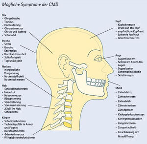 Craniomandibuläre Dysfunktionen (CMD) sind eine international anerkannte Erkrankung. Sie umfassen die Erkrankung des Kauapparates, der Kaumuskulatur, des Bisses und des Kiefergelenks. Meist haben die Patienten starke Schmerzen, Ohrgeräusche, Schwindelattacken oder andere unerträgliche Symptome. Sie können jedoch auch in Form absteigender Ketten andere Körperbereiche krank machen.