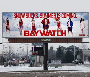 Wenn die Einwohner der umworbenen Städte vor Kälte zittern, ändern die Plakate ihre Botschaft auf: "Verdammt, ist es kalt." oder "Frostbeulen.", jeweils mit dem Versprechen, dass der Sommer - und der Baywatch-Film - bald kommt. Bis zum 5. Februar sollen insgesamt 52 digitale Anschlagtafeln für den Baywatch-Film werben. Diese stehen in Städten wie Flint, Waterloo, Lincoln und Syracuse. Stars der beliebten Fernsehserie wie David Hasselhoff und Pamela Anderson sollen übrigens Gastauftritte im Film haben.