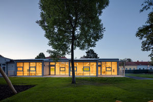 Sowohl die statischen Vorteile, als auch die einfache und ehrliche Bauweise der Wandelemente haben die Pläne des Architekten aus Wien unterstützt. Eine große Herausforderung für das Atelier Novarc stellte die Fassadengestaltung dar: Um die gute Ökobilanz des Zubaus nicht zu gefährden und das nachhaltige Bauen konsequent weiterzuführen, setzte der Architekt auf eine hinterlüftete Fassade und wollte unbedingt auf den Einsatz von herkömmlichen Vollwärmeschutz verzichten. Gerade noch im Rahmen des knappen Gesamtbudgets, konnte das Architekturbüro Novarc die Außenhülle der Kinderkrippe Brendani trotzdem mit farblich akzentuierten Eternitplatten einkleiden und damit einen besonderen Abschluss für den Zubau finden. Neben der Budgetknappheit war eine weitere Herausforderung an diesem Projekt die knappe, zeitliche Vorgabe.